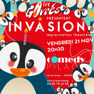 Nous invitons des troupes d’improvisateurs de toute la France (Montpellier, Rumilly, Chambéry, Catus, Clermont-Ferrand, St Paul Trois Châteaux, etc…) et même au-delà ! Nous nous déplaçons également chez eux.